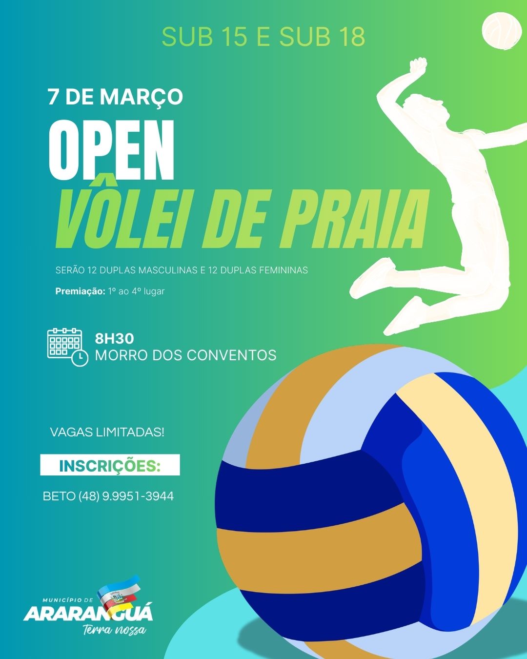 Será um dia de disputas emocionantes, superação e muita vibração à beira-mar. Chame sua dupla e faça parte desse grande momento do esporte araranguaense!