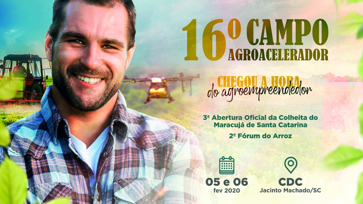 Estamos nos aproximando do maior Dia de Campo da agricultura do Sul de Santa Catarina. Será a 16ª edição do Campo Agroacelerador, que acontecerá nos dias 05 e 06 de fevereiro de 2020, no Campo Demonstrativo Cooperja (CDC) em Jacinto Machado – SC. O evento tem como objetivos apresentar as potencialidades do agronegócio; agregar conhecimento técnico; trocar de experiências possibilitando maior transferência de tecnologias aos agricultores; aumentar a produtividade, diversidade e rentabilidade na propriedade.