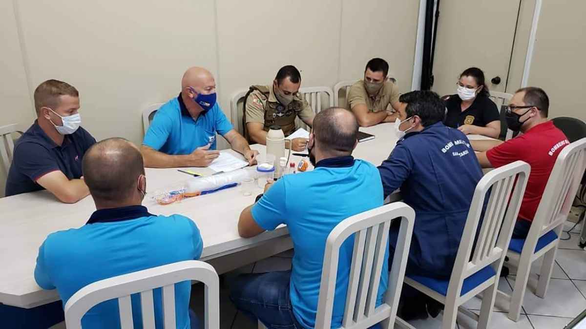 Representantes da Administração Municipal de Balneário Arroio do Silva e órgãos de segurança pública se reuniram nesta tarde para debater estratégias e ações com relação as medidas de enfrentamento da Covid-19. O Governo do Estado de Santa Catarina prorrogou as medidas sanitárias e restringe mais atividades, de acordo com o Decreto nº 1.200 de 10 de março de 2021. Com isso, e diante da preocupação com a atual situação da pandemia, o município deve agir efetivamente junto com os órgãos de segurança. Uma das estratégias será a realização de uma barreira informativa nesta sexta-feira (12/03) com o objetivo de reforçar a informação do decreto vigente e dos cuidados necessários para combater a pandemia.