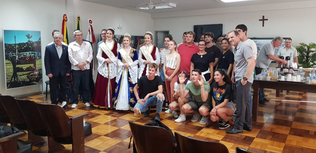 Na tarde da última segunda-feira (9/9), 14 adolescentes e 2 professores italianos, foram recebidos no auditório da prefeitura de Turvo pelo prefeito, Tiago Zilli; o vice-prefeito, Edson Jair Dagostin; o presidente da Câmara de Vereadores, Hendel Maragno Pescador, secretários municipais, vereadores e funcionários da Administração Municipal. A comitiva veio ao município, conhecer sua história e características, através de um intercâmbio com a Escola SATC, que mantém sua filial em Turvo desde 2015. Na ocasião, o Coordenador da SATC, Fabiano de Medeiros Ugioni, falou sobre a receptividade dos turvenses e sobre a enriquecedora experiência do programa, intermediado pela Unidade de Ensino. Aos Italianos, foi apresentado um breve vídeo sobre Turvo e sua cultura, e servidos alguns produtos destaques no município, como a Pitaya e seus derivados. A rainha da 24ª Festa do Colono, Dandara Lodetti e as princesas Roberta e Maria Luiza, estiveram presentes também na recepção. A rainha contou um pouco sobre sua viagem a Itália e o quão bem recebida foi pelos italianos. Dois estudantes italianos ficarão hospedados em Turvo, em residências de alunos da SATC, os quais em dezembro passarão pela mesma experiência na Itália, sendo recebidos pelas famílias de lá.