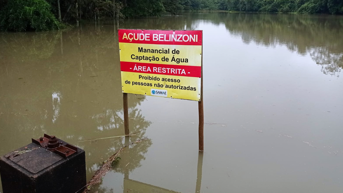 O excesso de chuva dos últimos dias fez com que o Açude Belinzoni - que abastece a ETA III - apresentasse mudança em suas características originais. Assim, a água do local, que tradicionalmente é cristalina, está turva. Além disso, o leito do manancial natural está acima do nível normal. Em decorrência desta situação, o SAMAE adotou a medida preventiva de fazer com que a ETA III opere com 30% de sua capacidade total. A orientação do engenheiro químico Mário Copetti é para que a população economize água e providencie reserva, abastecendo as caixas d’água. Ele acredita que, cessando o período chuvoso e voltando o tempo bom, aumentará o consumo de água.
