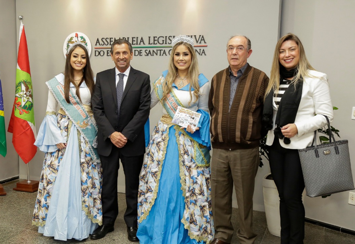 Durante roteiro na Assembleia Legislativa de Santa Catarina (Alesc) o prefeito e as soberanas foram recepcionados pelo presidente da Alesc, deputado Júlio Garcia, e utilizaram a tribuna no intervalo da sessão para divulgar a Festa e convidar toda comunidade catarinense para participar do evento.