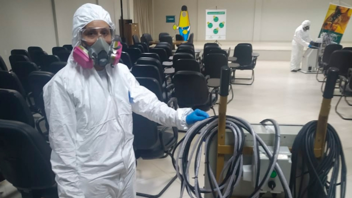 Com grande capacidade de desinfecção, 100 vezes mais potente do que o cloro e agindo até 3.120 vezes mais rápido, o ozônio pode zerar a contaminação de uma sala em cinco minutos.