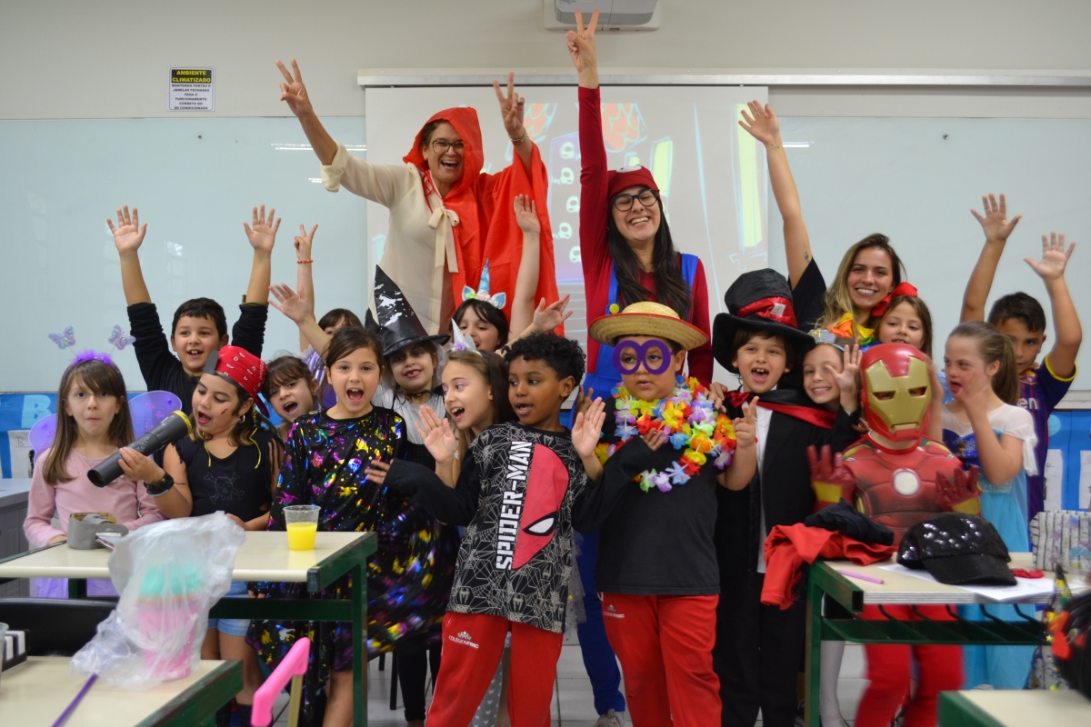 Os professores também utilizaram fantasias durante a comemoração. “É uma oportunidade para brincadeiras, integração e felicidade. Também oferecemos uma lembrancinha para cada aluno, para que saiam felizes e sintam prazer em retornar”, completou Carina. Toda a comemoração do encerramento do primeiro semestre de 2019 é resultado de um projeto pedagógico que trabalhou respeito, harmonia e paz no ambiente escolar.