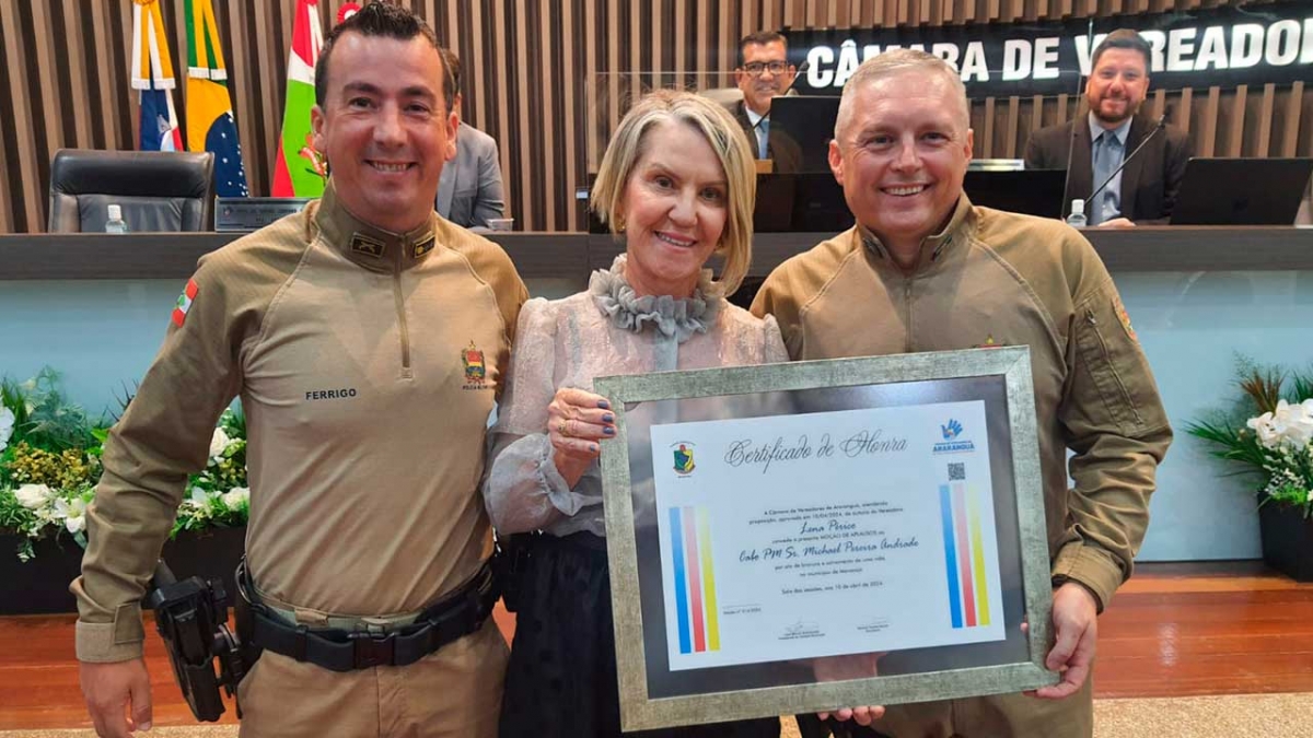 De autoria da vereadora, Lena Périco, uma MOÇÃO DE APLAUSOS foi aprovada durante a sessão de quarta, 10, na Câmara Municipal, pelo ato de bravura do Cabo da Policia Militar, Sr. MICHAEL PEREIRA ANDRADE, que ajudou salvar um homem que tentava tirar a própria vida no final de 2023 na BR-101, no município de Maracajá.