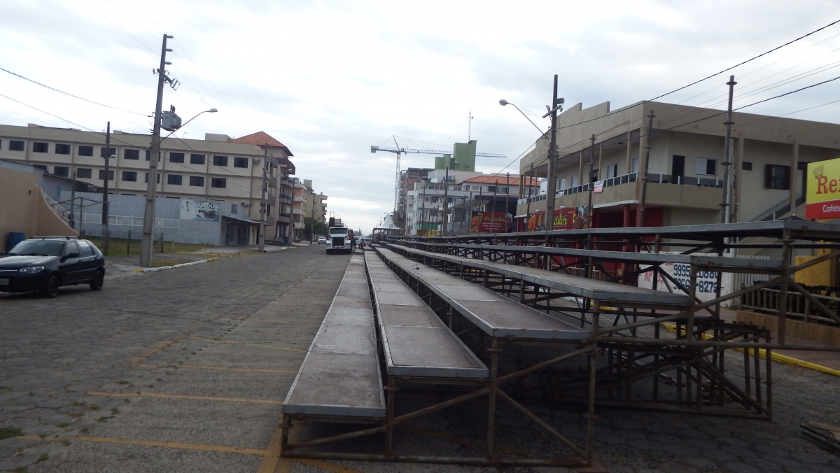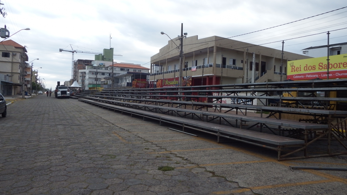 Com capacidade para mil pessoas três arquibancadas estão sendo montadas na Avenida Getúlio Vargas para o grande desfile de domingo(foto). O público também assiste levando sua cadeira de praia, em pé e muitos das sacadas dos prédios localizados na Avenida Getúlio Vargas e esquina da Avenida Barriga Verde, onde acontece a dispersão. A concentração da escola de samba e blocos ocorre entre a esquina da Avenida Florianópolis até a Rua Passo Fundo, sentido-sul. Segundo o secretário de Turismo, Joey Ramone da Silva, a Prefeitura também terá segurança reforçada nestes dias de carnaval, além do apoio das polícias Civil e Militar, banheiros químicos em pontos estratégicos.