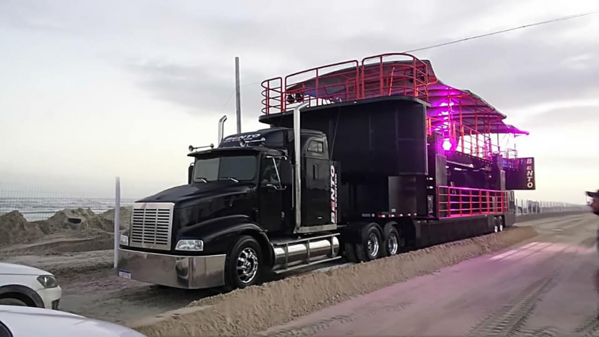 A Carreta batizada de TDB, inaugurada no Arrancadão de Motos da Praia da caçamba, conta com 160 metros quadrados de área, dois palcos, elevadores, dois camarins e camarote, com uma potência de som de 150 mil watts.