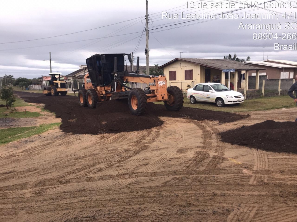 Nos bairros Sanga da Areia, Operária, Polícia Rodoviária e nas ruas José Francisco Alves e Leopoldino João Joaquim, foram realizados serviços de patrolamento e restauração com brita das vias.