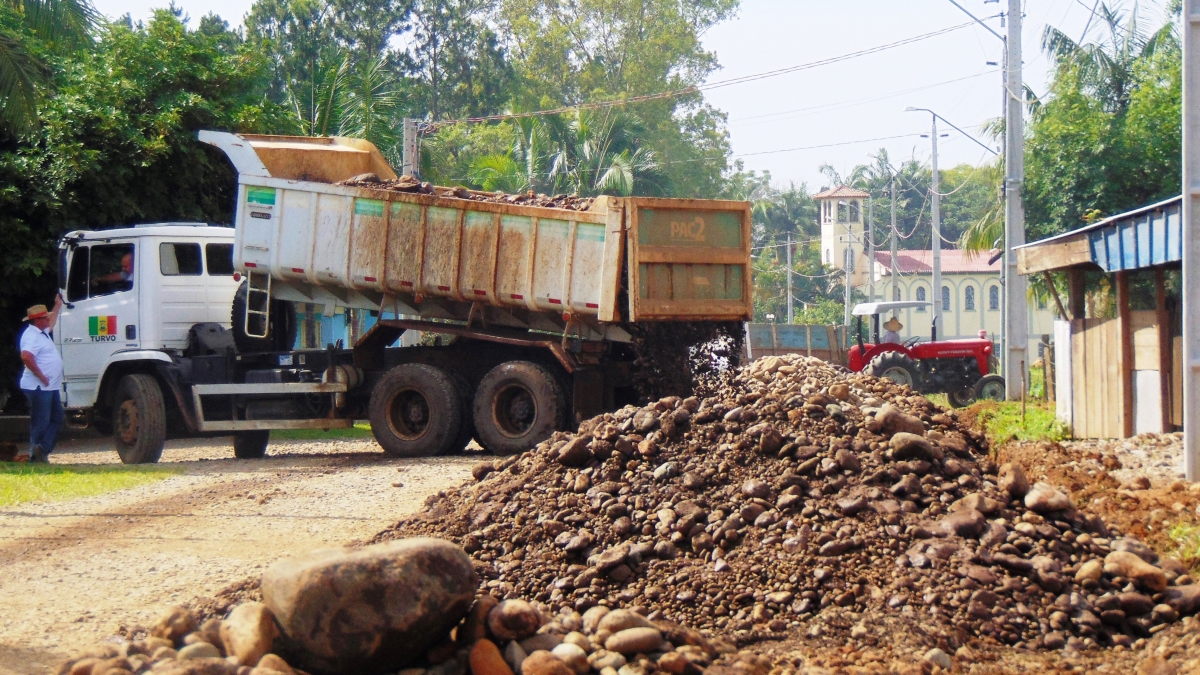 As obras na TVO 361 que liga a Comunidade de São Felipe ao perímetro urbano continuam em ritmo acelerado. Serão 1,7 Km de pavimentação asfáltica ligando a Rua David Zaccaron, no bairro Cidade Alta, até a igreja da localidade, com recursos próprios do município. Os serviços de locação, estaqueamento, abertura de valas e drenagem já estão concluídos e os serviços de terraplanagem estão em ritmo acelerado.