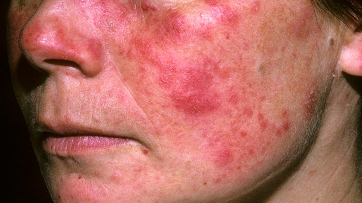 • Manchas vermelhas na pele, em especial no rosto e outras partes expostas ao sol;