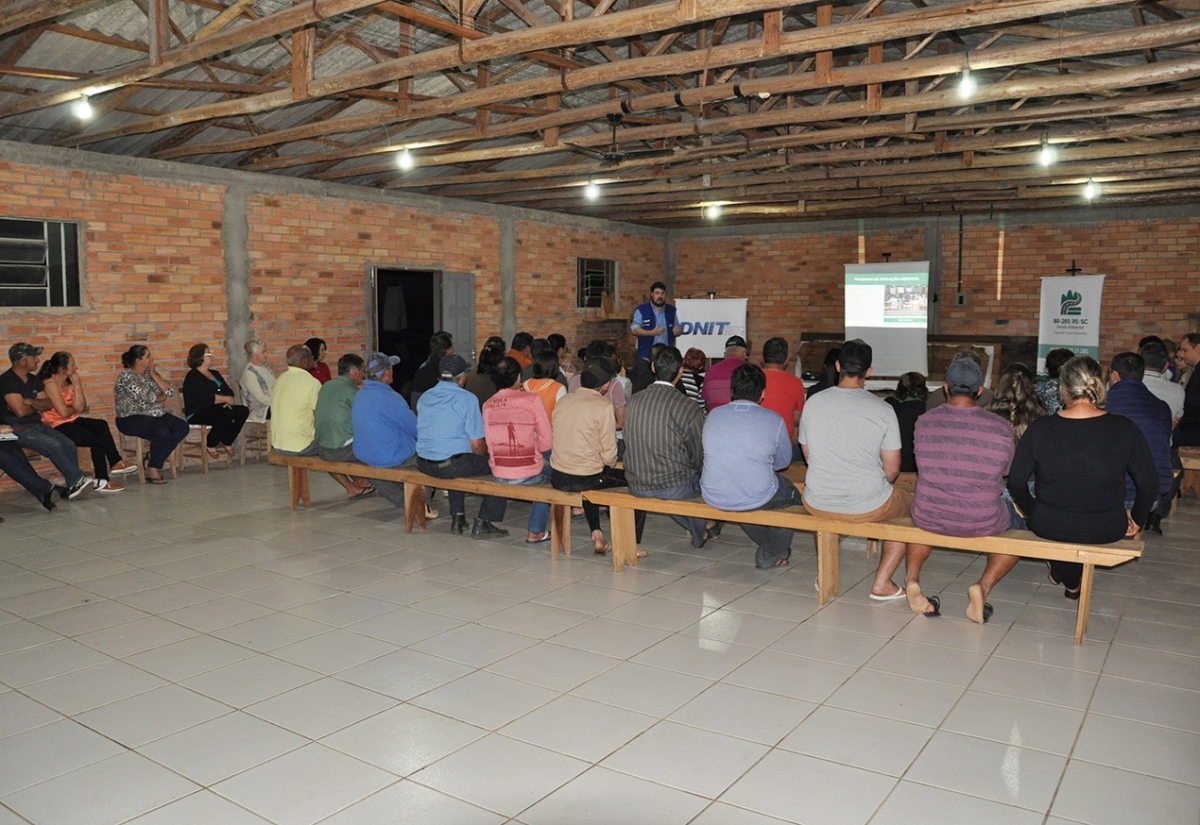As obras de implantação e pavimentação da BR-285/RS/SC foram tema de duas reuniões comunitárias realizadas nesta semana em Timbé do Sul. Equipes do Departamento Nacional de Infraestrutura de Transportes (DNIT/SC) e da Gestora Ambiental do empreendimento (STE S.A.) dialogaram com os moradores sobre assuntos como desapropriação, uso e ocupação da faixa de domínio, projeto de sinalização, segurança no trânsito, entre outros temas. As reuniões ocorreram nos dias 23 e 24/07, no salão comunitário do Pé da Serra e na Associação de Moradores da Vila Belmiro, respectivamente, e contaram com a presença de aproximadamente 70 pessoas.