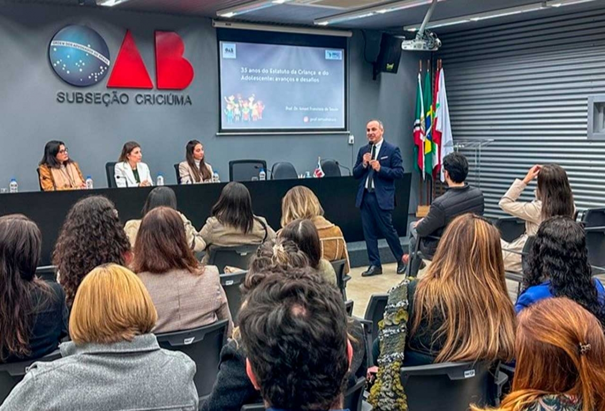 No mês em que o Estatuto da Criança e do Adolescente (ECA) completa 35 anos de existência, a OAB Subseção de Criciúma reuniu advogados, advogadas, representantes de órgãos públicos e entidades da rede de proteção para debater o tema, visando contribuir para a defesa dos direitos da Criança e do Adolescente. O encontro ocorreu nessa terça-feira (8), em uma palestra ministrada pelo professor Dr. Ismael Francisco de Souza, referência no tema.