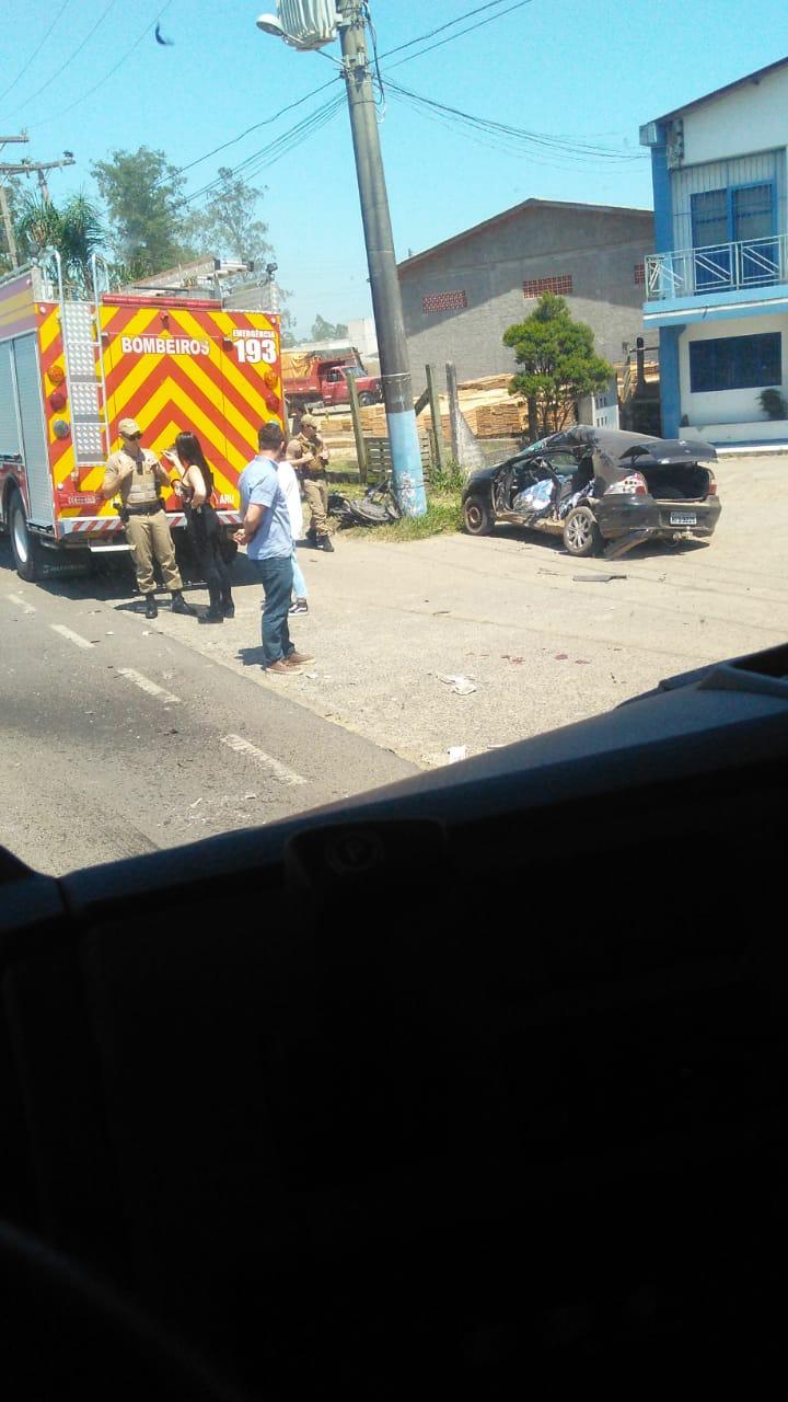 Na manhã desta sexta-feira, 22, por volta das 10h, um grave acidente chocou moradores, empresários e quem transitava pela SC-447, mais conhecida como Rodovia Jorge Lacerda. Um Prisma de cor preta com placas de Forquilhinha colidiu com um caminhão tanque que trafegava na SC.