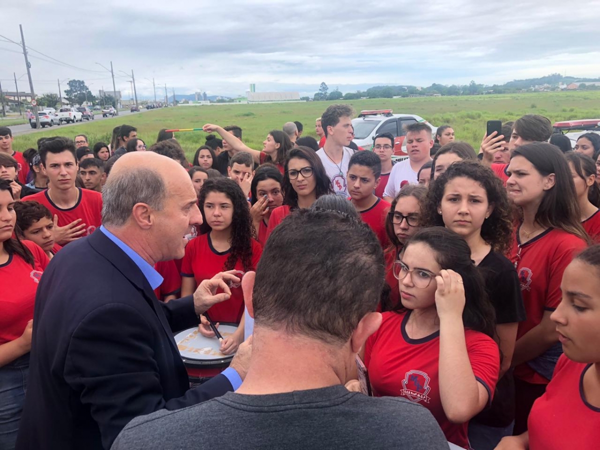 Em meio ao anúncio das obras, diversos estudantes da Escola Professora Maria Garcia Pessi estiveram em frente à sede da AMESC, onde aconteceu a acolhida do governador. De acordo com estudantes que idealizaram o momento, eles foram informados que a entrada estava proibida. “Eles falaram que adolescentes não estavam autorizados a entrar, ainda mais uniformizado. Educação não funciona sem estrutura, precisamos de melhorias em nossa escola”, pontuaram.