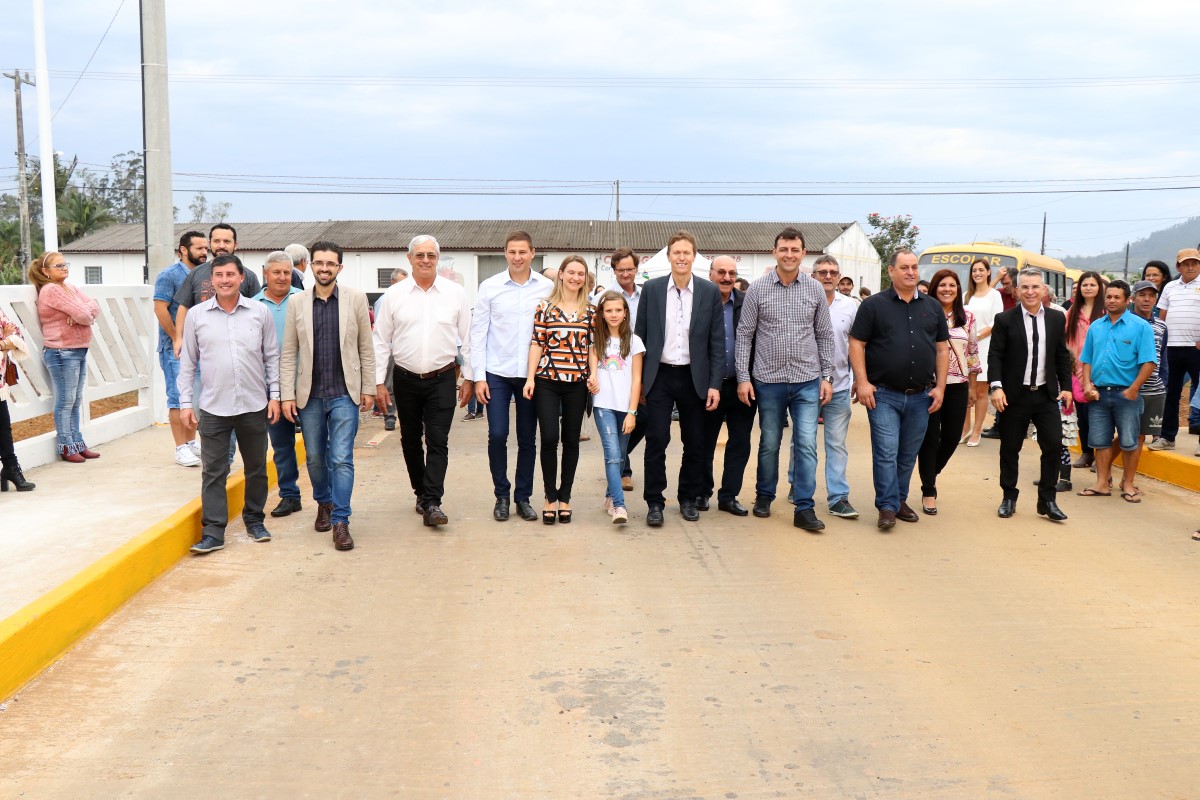 Participaram do ato de inauguração o vice-prefeito Aldo Brognoli, o representante do deputado estadual Luiz Fernando Vampiro, Rodrigo Comin, o deputado estadual Volnei Weber, o ex-deputado Manoel Mota, o presidente da Câmara de Vereadores Enison Recco, os vereadores Valdir Trombim, Elizeu de Borba, Zelito Paganini, Rosangela Ferreira e José Francisco de Aguiar, o prefeito de Turvo Tiago Zilli, o secretário de Obras Vânio de Melo, os doadores dos terrenos para a construção da ponte, Antônio Mezzari e Anilson José Búrigo, lideranças locais e regionais.