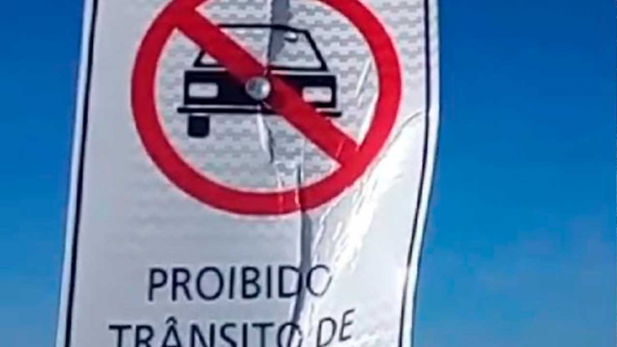 No entanto, motoristas tem retirado os palanques de delimitação, além de cometer vandalismo com as placas que regulamentam que é “proibido trânsito de veículos automotores”.