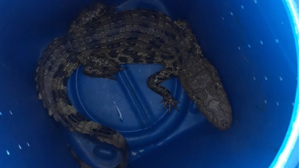Sem muita dificuldade, os bombeiros conseguiram capturar o “pequeno” jacaré que chamou a atenção dos moradores da região.
