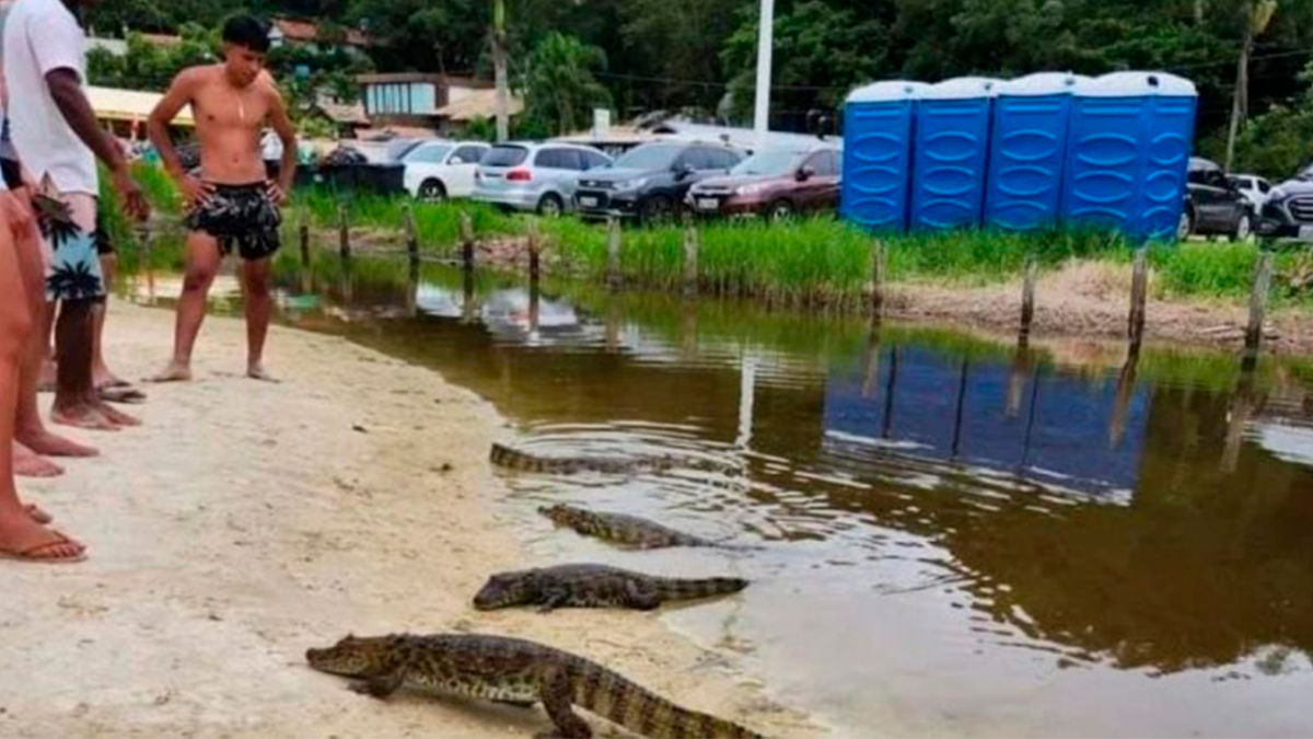 Os animais, segundo a publicação, são jacarés-do-papo-amarelo (Caiman latirostris), símbolos da Mata Atlântica, ecossistema que domina boa parte das paisagens da Ilha.