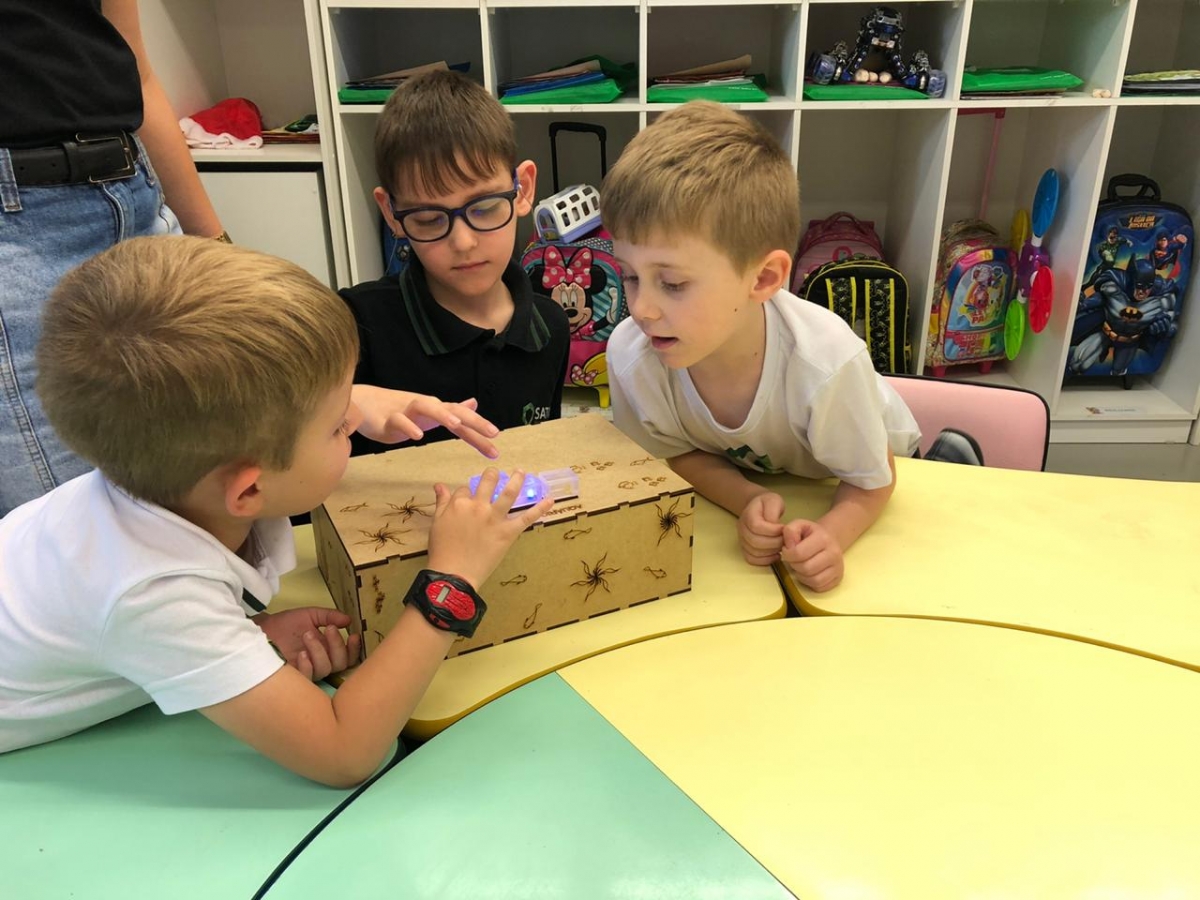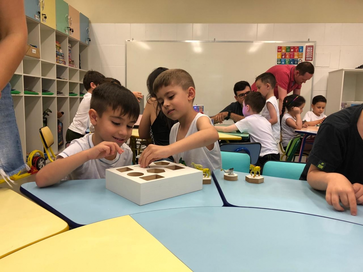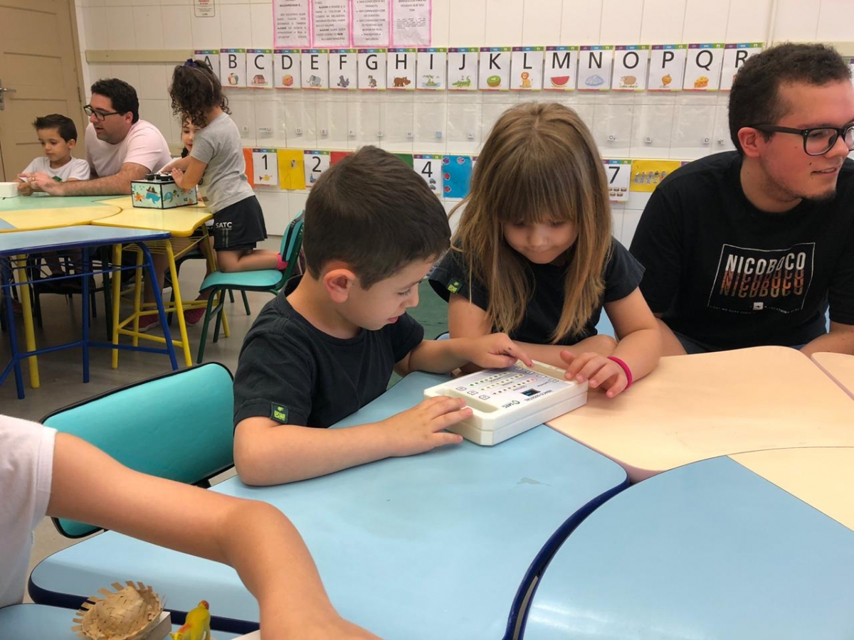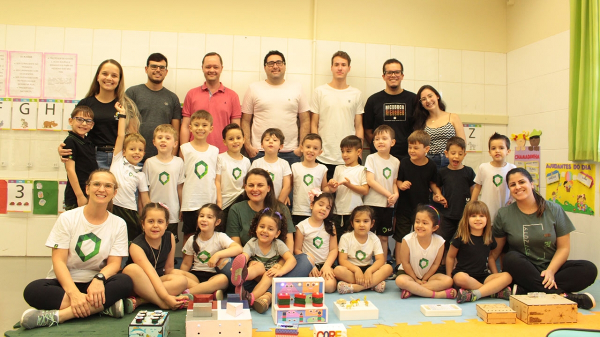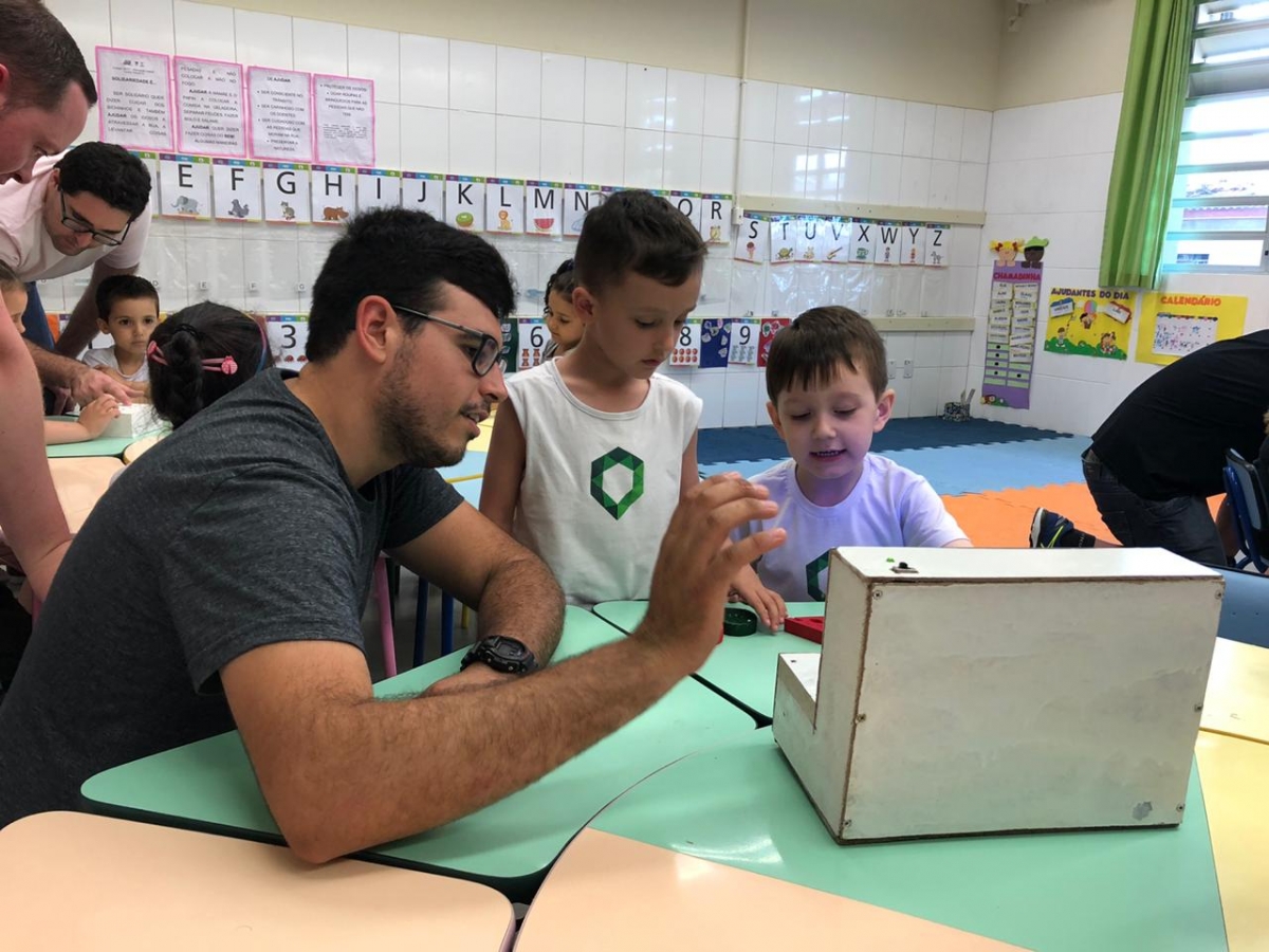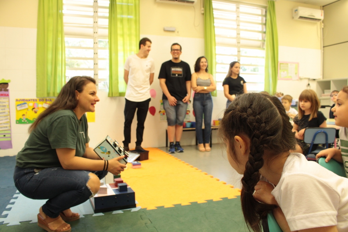 Unir os conhecimentos dos alunos de engenharia com alegria do brincar da turma do infantil. Foi assim que terminou o projeto de Jogos Educativos, uma parceria entre os cursos de Engenharia da Faculdade Satc e a educação infantil da instituição. O pequeno Olavo Machado Brolesi, 5 anos, não quis saber se deu muito trabalho para as turmas, o que ele queria era brincar. “A gente aprende coisas novas e fica feliz quando joga prô Gi”, comentou o menino.