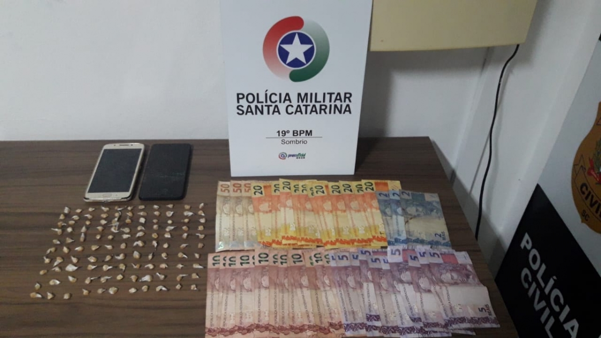 Na tarde deste domingo, dia 9, a Polícia Militar flagrou e prendeu um homem por tráfico de drogas e apreendeu dois menores, no bairro São Francisco, em Sombrio.