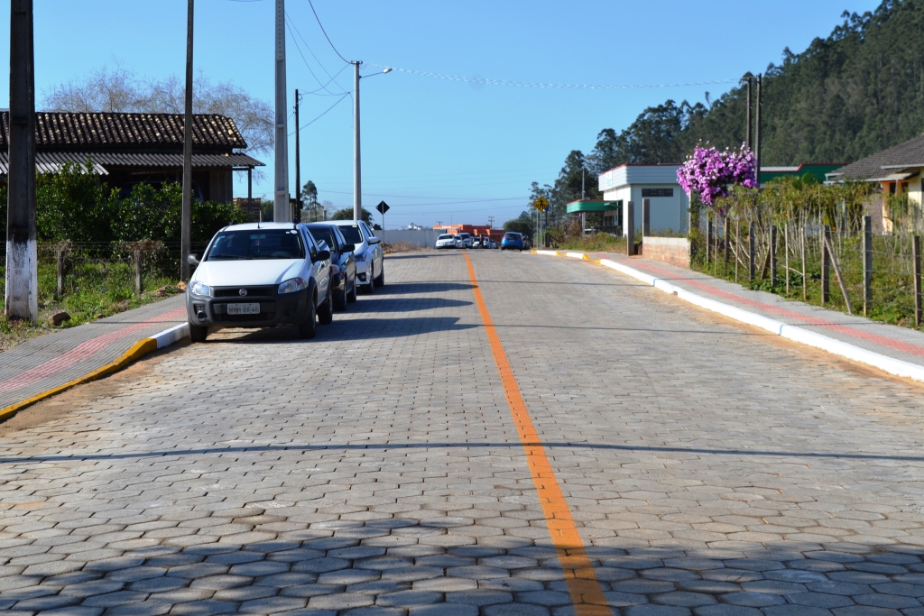 A primeira das entregas foi a pavimentação de lajotas da Rua Olávio Brovedan, em frente a EEB Ana Machado Dal Toé. Esta foi realizada através de uma emenda do deputado federal em atividade no ano da asinatura, João Rodrigues, totalizada no valor de R$ 178.413,47.