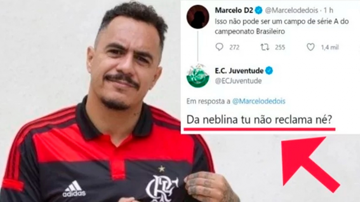 Um dos mais fanáticos torcedores rubro-negros, o cantor Marcelo D2, usou uma rede social para tecer comentários sobre o suposto favoritismo do time da casa, além de se queixar das condições precárias do gramado do Alfredo Jaconi: