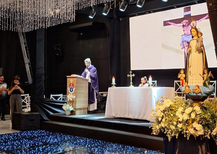 Nesta semana, a celebração foi realizada na quarta-feira (25), às 19h30, na empresa Fredy Pneus. A missa reuniu colaboradores, familiares e fiéis.