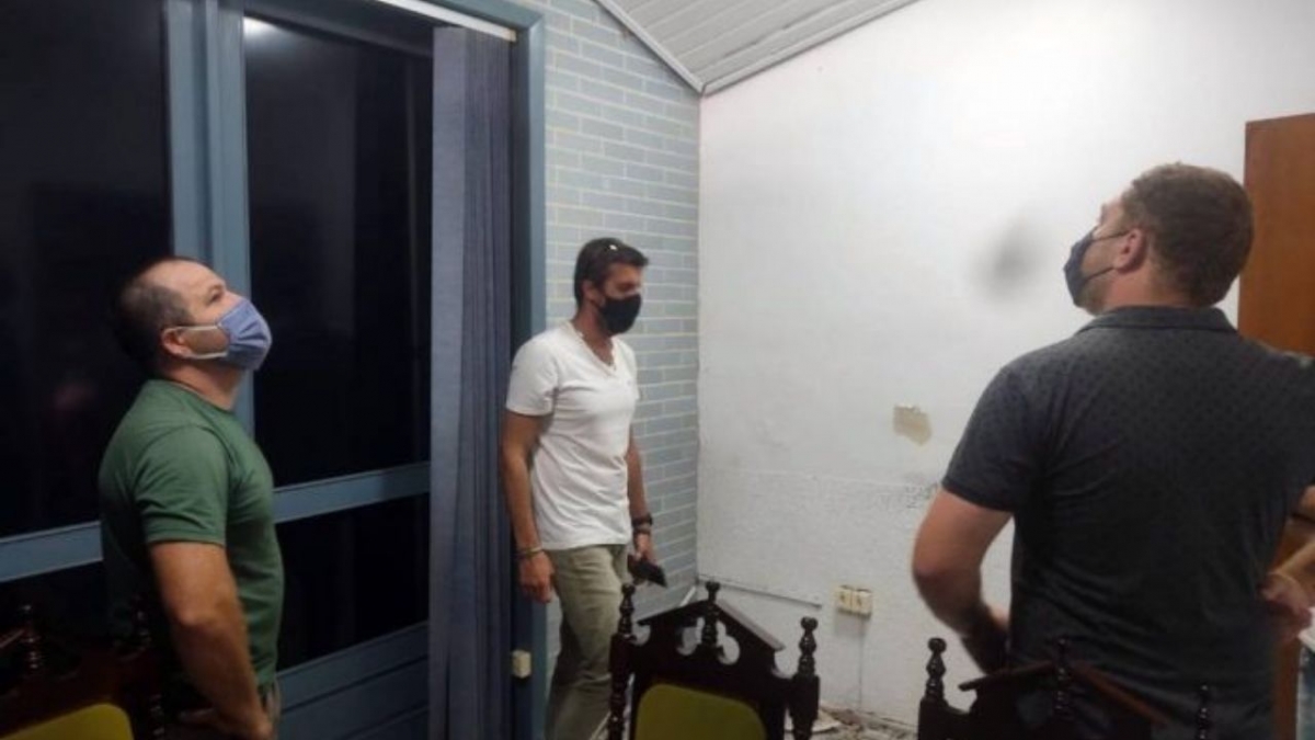 Defesa Civil esteve no Legislativo averiguando situação da parte do teto danificada após queda da estrutura da sala das comissões da Câmara de vereadores de Morro da Fumaça.