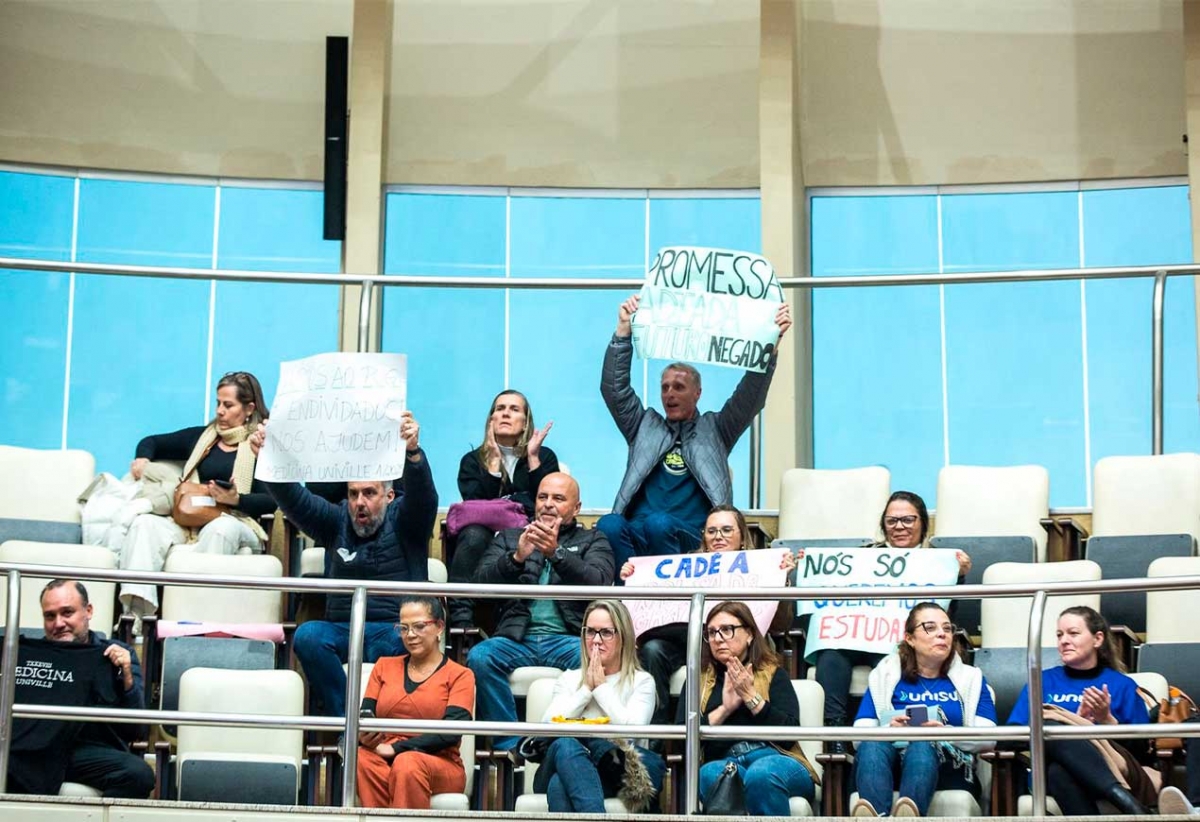 Universitários de diversas partes do Estado, incluindo estudantes da Unisul, lotaram o plenário da Assembleia Legislativa nesta terça-feira (24) para acompanhar a audiência pública sobre o programa Universidade Gratuita. E voltaram para casa otimistas de que haverá mudanças na forma de concessão de bolsas de estudo por meio do programa do Governo de Santa Catarina.