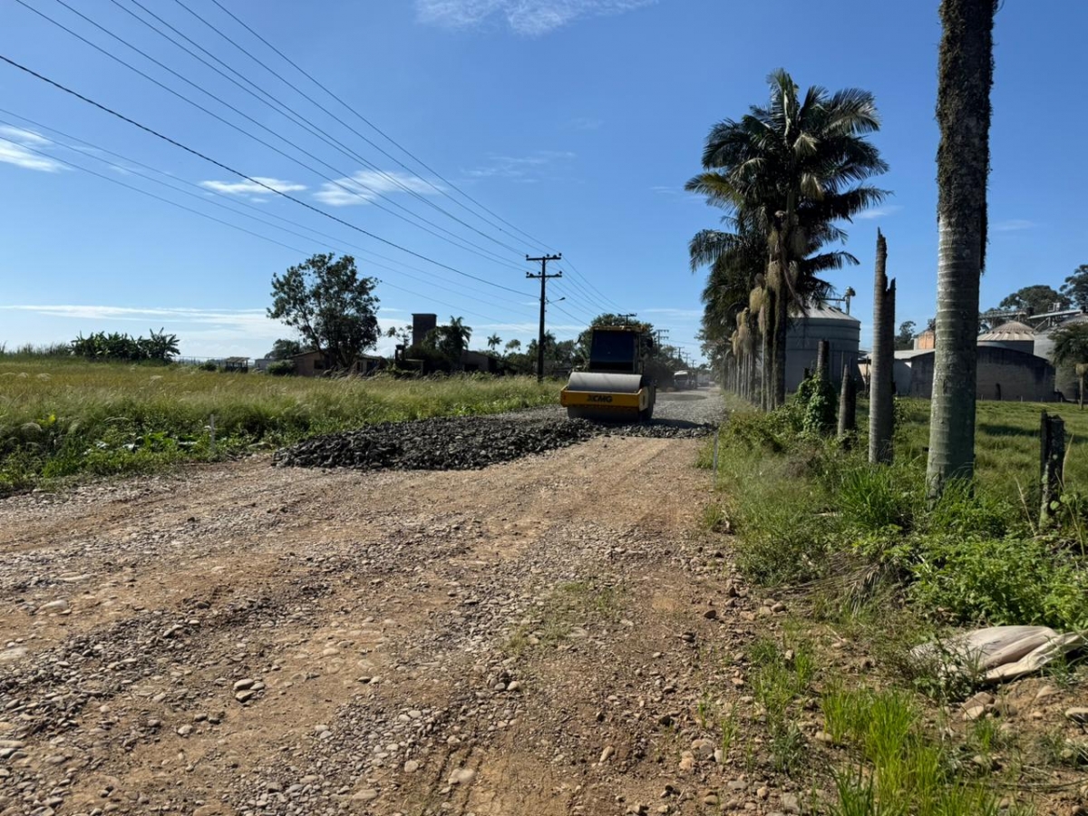 A obra de pavimentação na localidade de Boca do Pique, realizada por meio do programa Estrada Boa Rural, do Governo de Santa Catarina, segue avançando conforme o cronograma estabelecido pela Prefeitura de Araranguá.