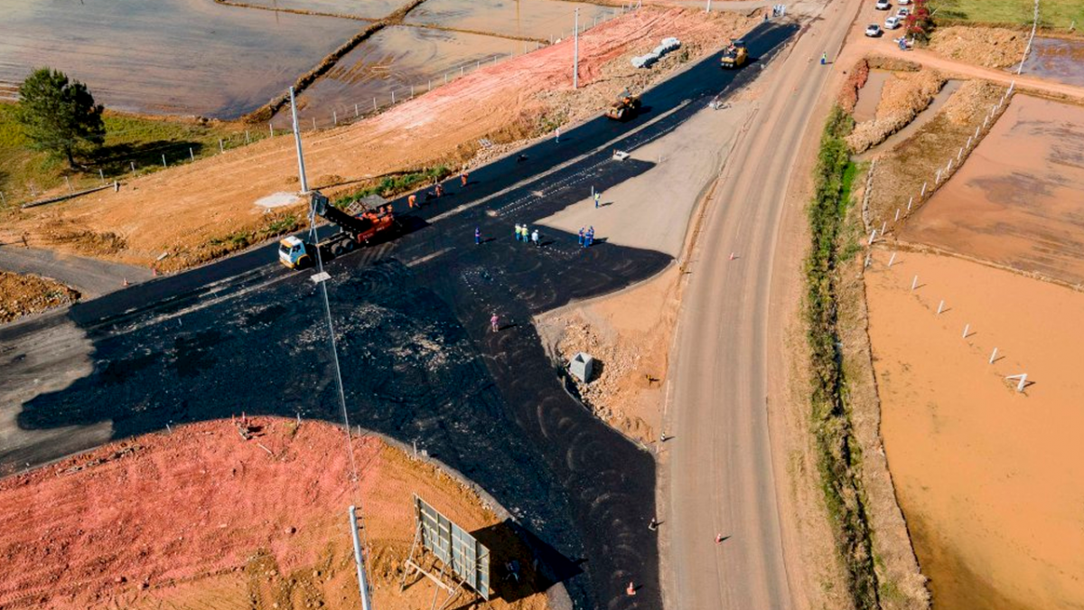 O avanço das obras de implantação e pavimentação da BR-285/RS/SC chama a atenção de quem circula nas proximidades do pórtico de entrada de Timbé do Sul. No início do trecho que contorna o município, entre o km 33+800 e o km 35+660, foi concluída a terraplenagem e já iniciada a pavimentação asfáltica. O Departamento Nacional de Infraestrutura de Transportes (DNIT) alerta para o movimento intenso de maquinário pesado na região visando a execução da drenagem urbana e da interseção que irá organizar o tráfego local. Neste período podem ocorrer modificações na rodovia, como pequenos desvios ou passagem em meia pista. Por isso, a recomendação é reduzir a velocidade e respeitar a sinalização de segurança.