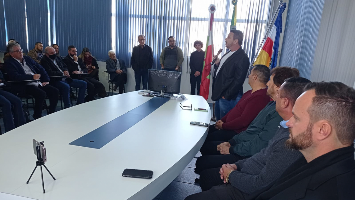 Entre os presentes, o prefeito municipal, César Cesa; vice-prefeito, Cristiano da Silva Costa; diretor da Fundação Ambiental do Município de Araranguá (FAMA), Maureci Rodrigues; diretor geral do SAMAE, Jairo do Canto Costa, secretários municipais e vereadores. O auditório está lotado.