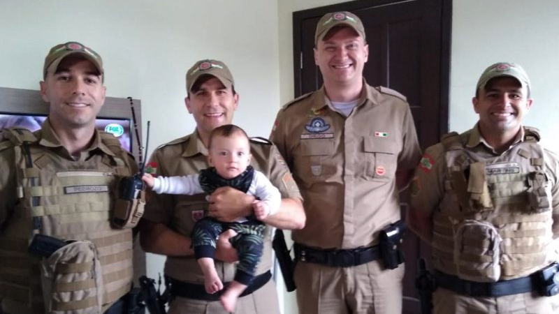 Na tarde de quarta-feira, 28, os policiais que realizaram o salvamento do pequeno Mateus, com apenas nove meses de vida, estiveram na residência da família, no bairro Coloninha, em Araranguá, para dar um abraço no bebê e nos pais.