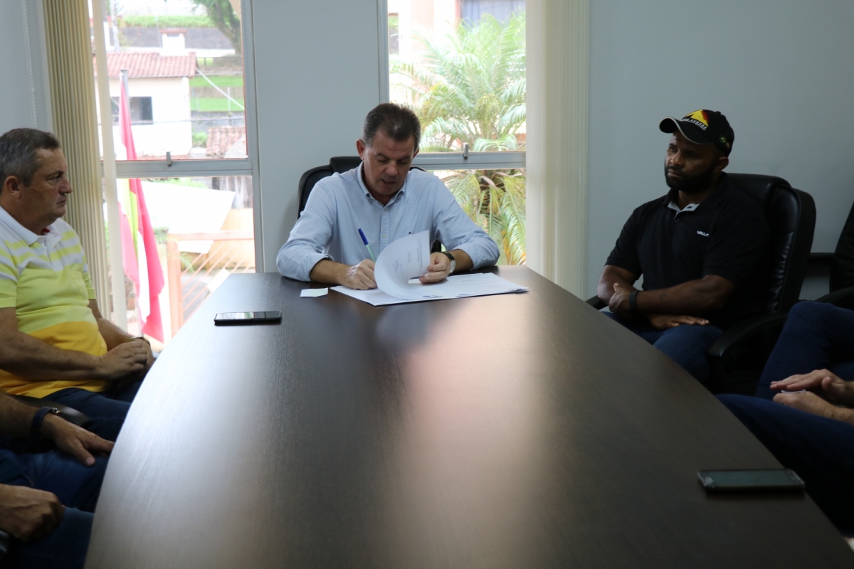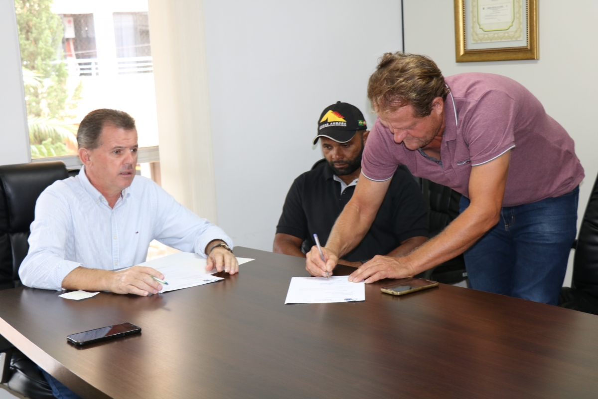 O ato contou com as presenças dos vereadores Arlindo da Silva, César Augusto Pasetto, Dalto Bortolotto, do secretário de administração e finanças, Osnir Ghellere e representantes da empresa vencedora da licitação.