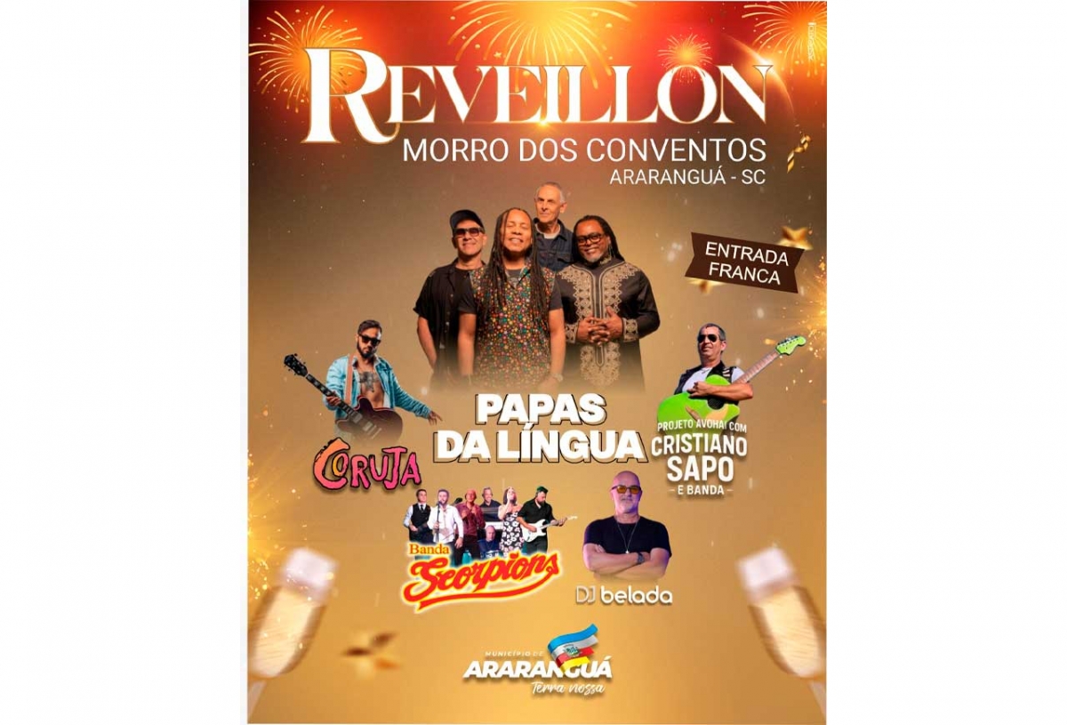 A Prefeitura Municipal de Araranguá prepara uma grande festa para celebrar a chegada de 2026. O evento, que promete reunir milhares de pessoas na beira-mar, terá como atração principal o show nacional da consagrada banda Papas da Língua, trazendo sucessos que marcaram gerações e prometem embalar a virada do ano.