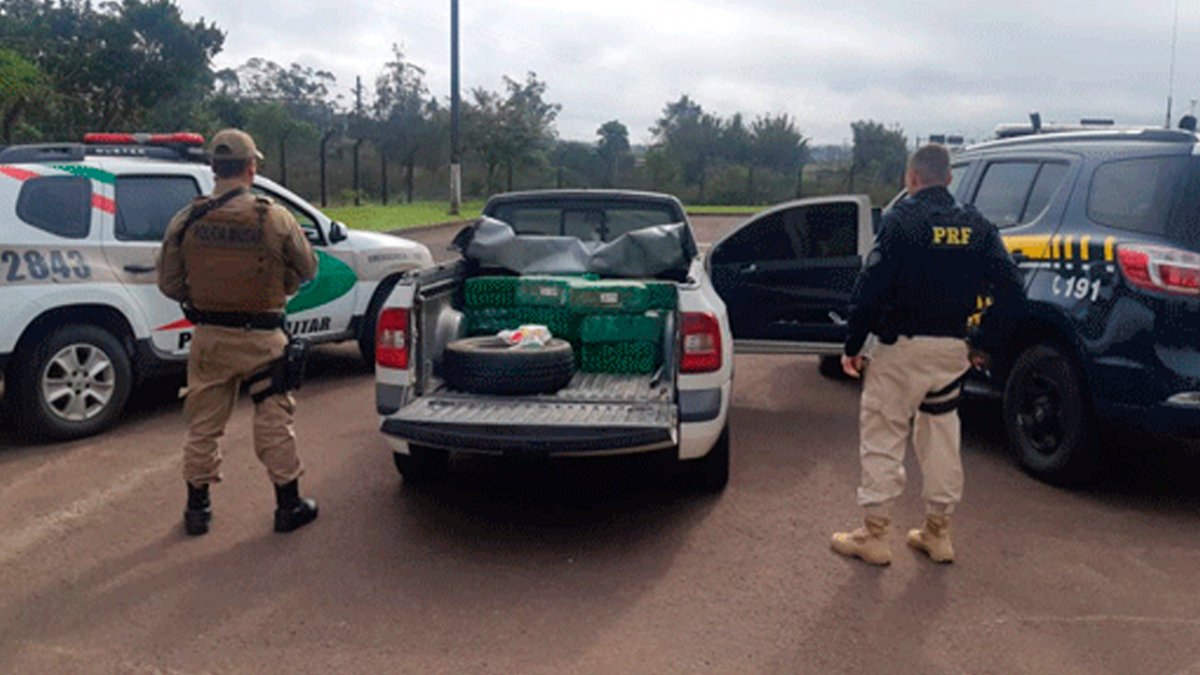 Na manhã desta sexta-feira (14), na BR 101 em Torres, a Polícia Rodoviária Federal e a Policia Militar de Santa Catarina prenderam dois homens e apreenderam 250 quilos de maconha sendo transportada numa Saveiro