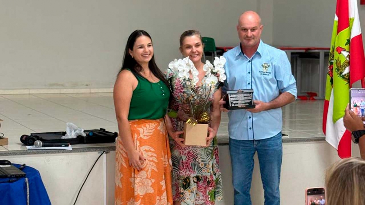 Foram agraciadas com flores e placa de reconhecimento as professoras Ana Paula de Luca Vieira, Vanessa Delair Toreti Scarabelot e Jorge Luiz Carvalho Coral que não pode comparecer.