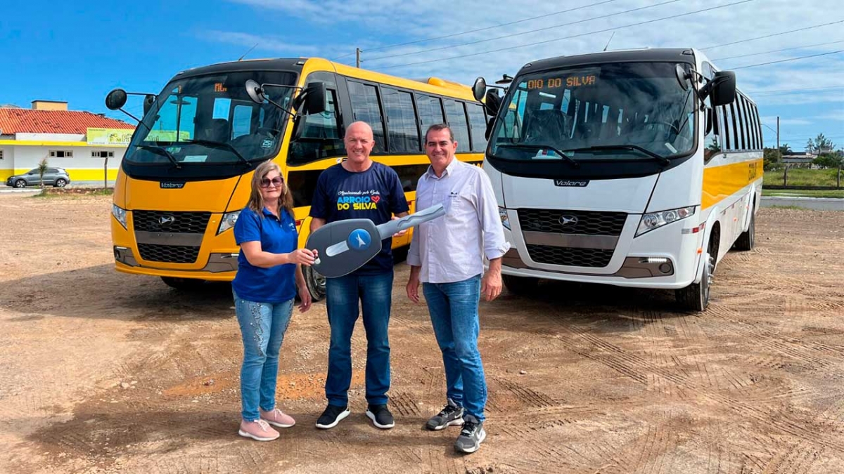 A renovação da frota municipal continua em Balneário Arroio do Silva. Dois ônibus 0km chegaram nesta semana e foram recebidos pelo prefeito Evandro Scaini.