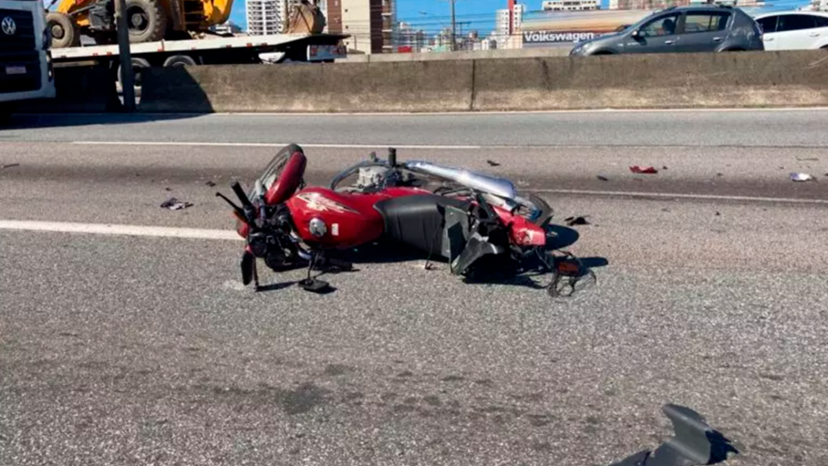 “Eu estava na pista da esquerda, atrás de um caminhão. Na frente tinha uma saída para a marginal, veio um carro atrás do caminhão e entrou. Eu joguei para a outra pista só que os carros estavam parando. Me assustei, não tinha visão e tirei para o corredor. Quando percebi bati na lateral com o guidão, a moto foi para um lado e eu para baixo do caminhão”, lembra.