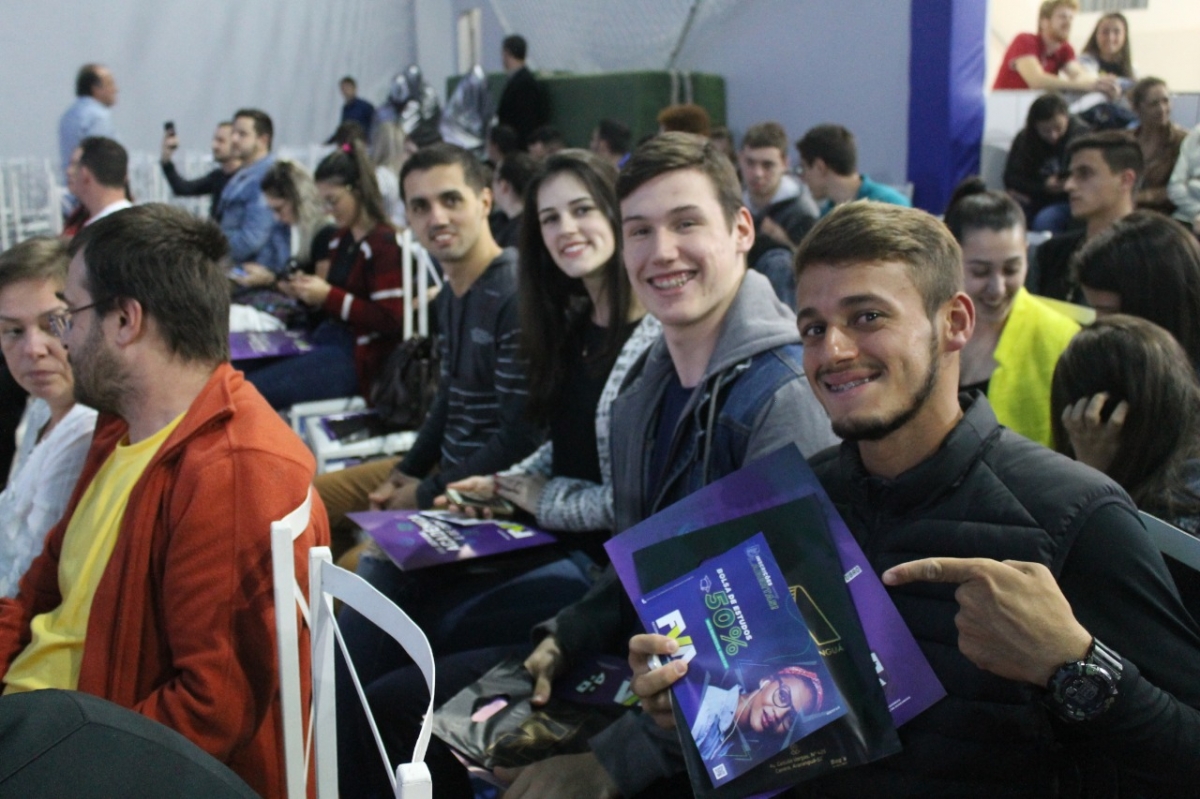 Com uma visão ampliada das relações e apontando dificuldades superadas e estratégias para conquistar o sucesso em seu próprio relacionamento, com muito bom humor e a ajuda da energia da plateia, a comunicadora da NSC TV Laine Valgas e seu esposo, Affonso Kulevicz, marcaram a abertura do evento com o tema “Seja Sua Melhor Versão”. Para o público, o momento foi de descontração e reflexão: “Foi muito bom, adorei a palestra deles, um tema muito pertinente. Eles falam de coisas que a gente pensa, das dores que existem dentro da gente, e de como saber lidar com isso”, disse a acadêmica da 8ª fase do curso de Educação Física da instituição, Karen dos Santos, que aproveitou a oportunidade para se unir a um pequeno grupo para dançar em cima do palco junto com o casal de palestrantes. “Achei participativo, com um grande engajamento do curso para os acadêmicos, fomentando uma visão diferenciada de mundo. Isso é excelente para esses futuros profissionais, já que a formação de qualquer profissional nunca deve se limitar às paredes da sala de aula”. A opinião do docente Rafael dos Santos, que ministra Análise de Demonstrações Contábeis no curso de Ciências Contábeis, reflete muito bem a sensação coletiva do público: o estímulo de ver a si mesmo, aceitar as falhas, trabalhar para que elas sejam superadas, evoluir.