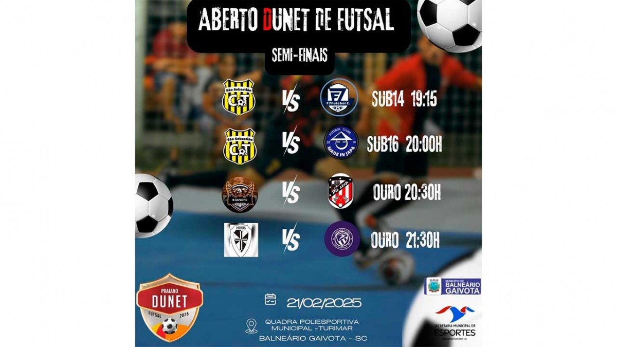 Os jogos acontecem na sexta-feira, 21, na quadra poliesportiva da Turimar. Venha conferir as partidas pelas categorias SUB 14, SUB 16 e OURO.