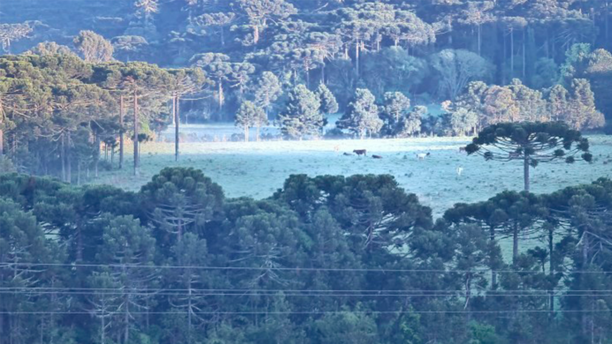 O município de São Joaquim registrou geada na manhã desta quarta-feira, dia 20. O clima frio deixou campos e plantas tomadas pelo gelo, sobretudo na localidade de Caminhos da Neve, a cerca de três quilômetros do município.