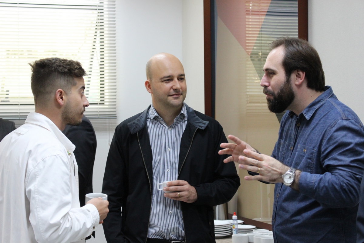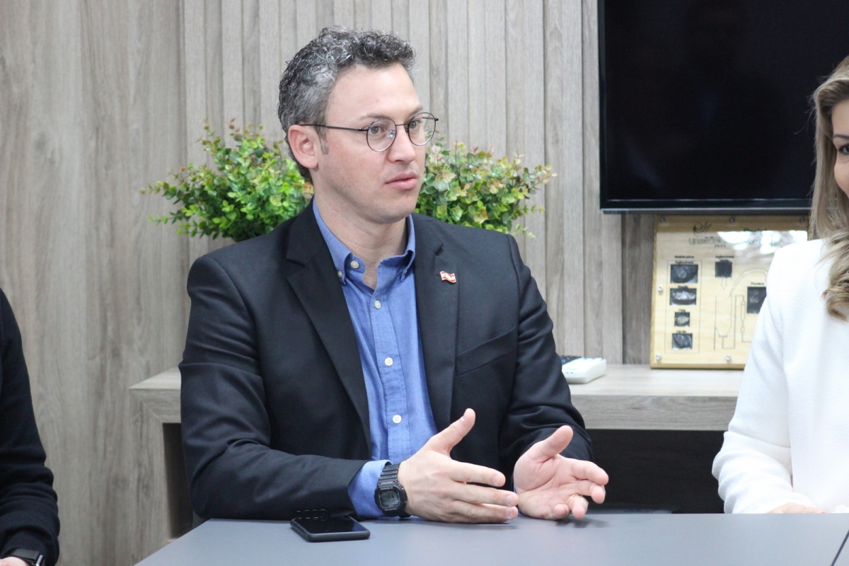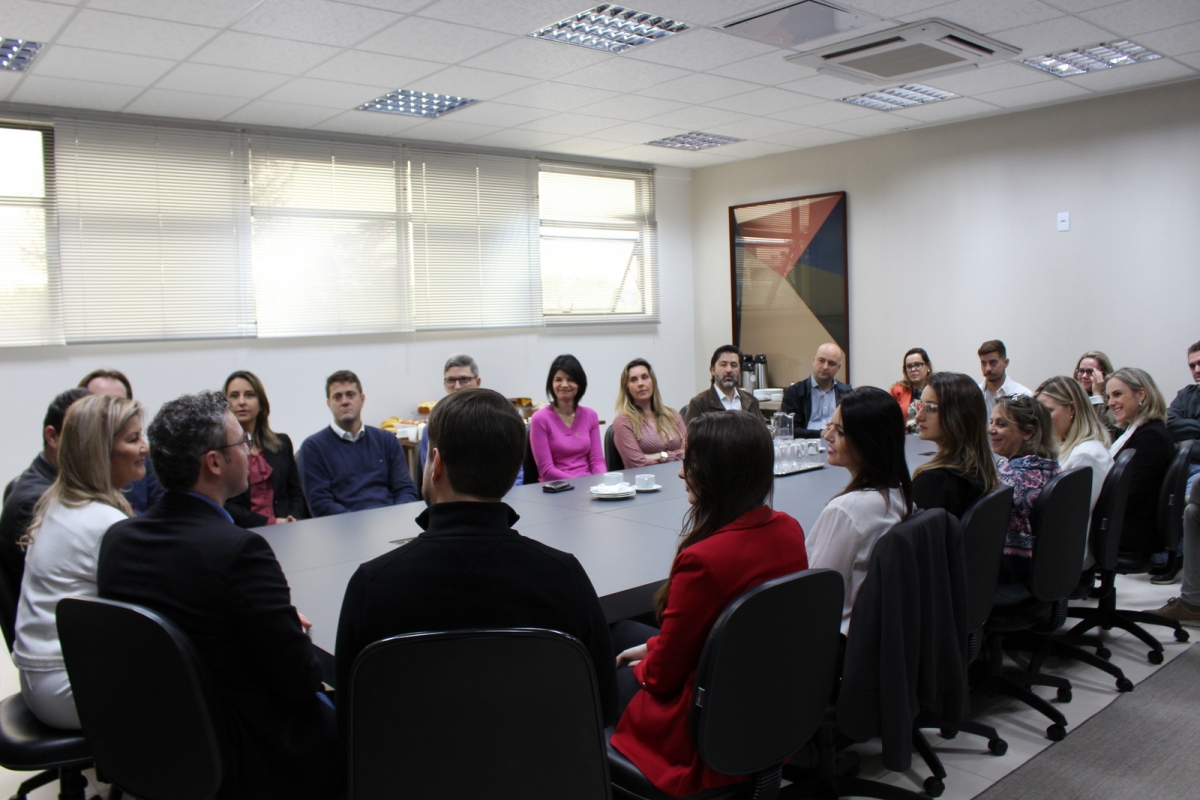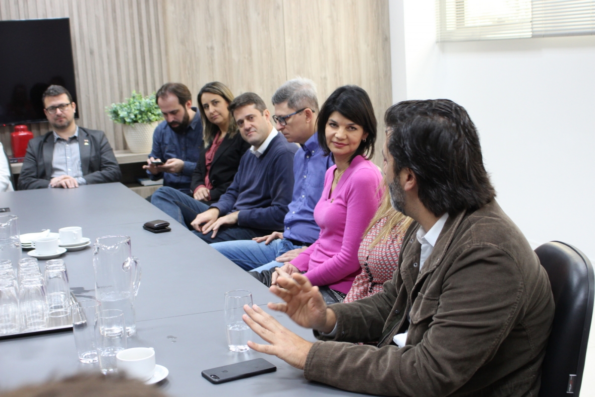 “É o momento de ouvir para buscar o desenvolvimento do Sul”. Foi assim que o secretário da SDE (Secretaria de Estado do Desenvolvimento Econômico Sustentável), Lucas Esmeraldino, descreveu sua vinda a Unesc na manhã desta sexta-feira (26). O acolhimento, com a presença de lideranças do Governo do Estado e da Universidade, foi uma continuidade do projeto “Rota SC - Inovação é o nosso combustível”, que reuniu a comunidade e autoridades da região na noite desta quinta-feira (25), no Auditório Ruy Hülse, para colocar em pauta a inovação, o desenvolvimento e a valorização do ensino. Após as conversas, a Sala dos Municípios, propositora das ações, recebeu representantes da gestão municipal, promovendo uma aproximação entre a Instituição e o poder público.