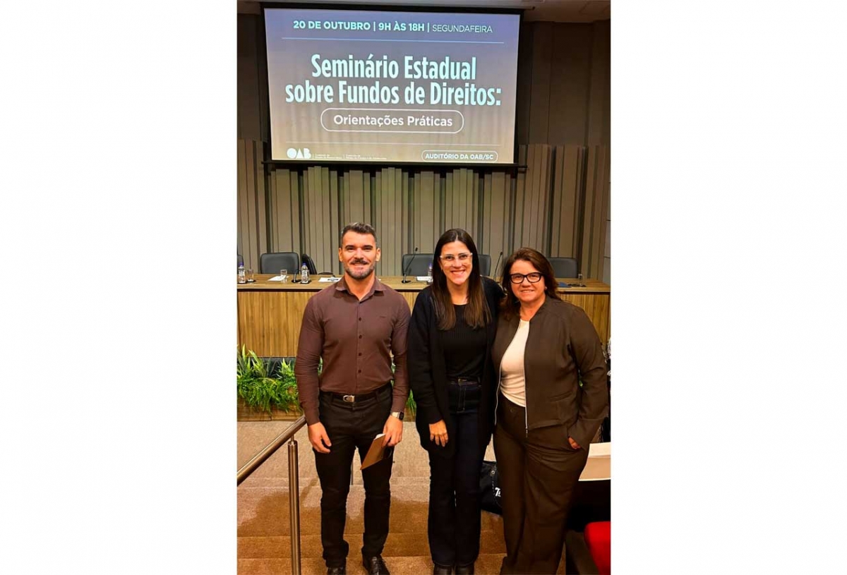 Representantes dos Conselhos Municipais dos Direitos da Pessoa Idosa (CMDPI), da Criança e do Adolescente (CMDCA) e de Assistência Social (CMAS) participaram, nesta segunda-feira, dia 20, do Seminário Estadual sobre Fundos de Direitos: Orientações Práticas, promovido pela OAB/SC, em Florianópolis.