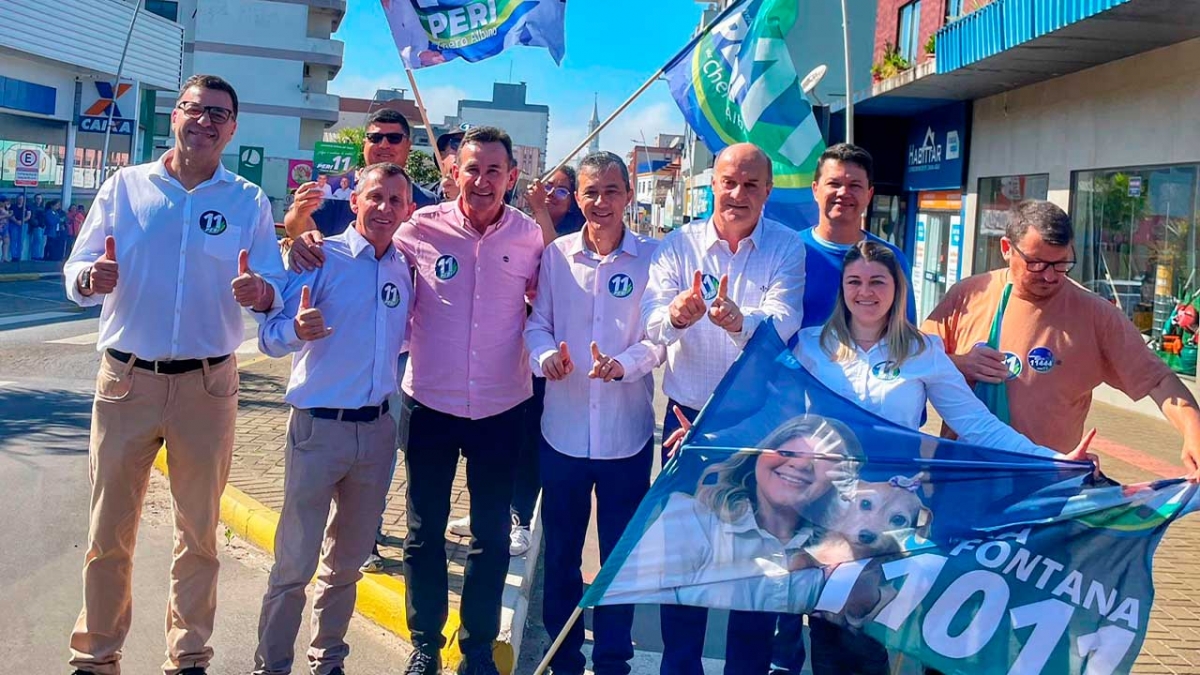 Goetten percorreu o comércio local juntamente com Peri e Chero, o deputado estadual Zé Miltone candidatos a vereadores da coligação, conversando com empresários e eleitores.