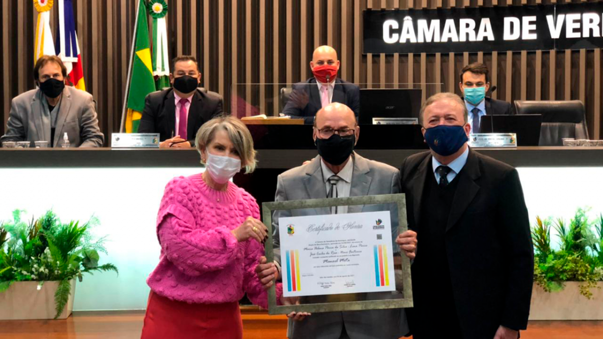 Acompanhado de sua esposa Maria das Graças o ex-deputado teve seu trabalho reconhecido pelos vereadores. Lena Périco pontuou a importância do cidadão araranguaense. “O sempre deputado Manoel Mota é uma grande liderança, por seis vezes foi líder da bancada do partido na Assembleia Legislativa de Santa Catarina (Alesc) e isso representa a sua força política. Como prefeito deixou a sua marca e como deputado mais ainda, lutou incansavelmente pela Barragem do Rio do Salto, BR-285, duplicação da BR-101 trecho Sul”, disse.