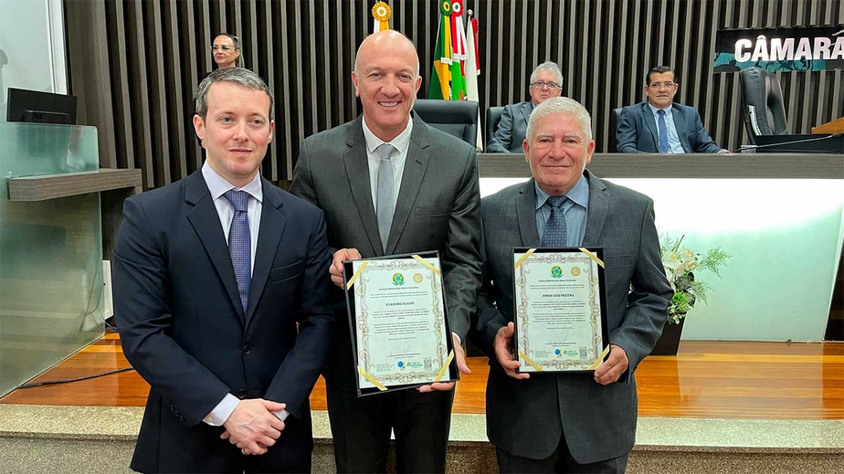 Os eleitos receberam o diploma das mãos do juiz da 1ª Zona Eleitoral, Gustavo Santos Mottola.
