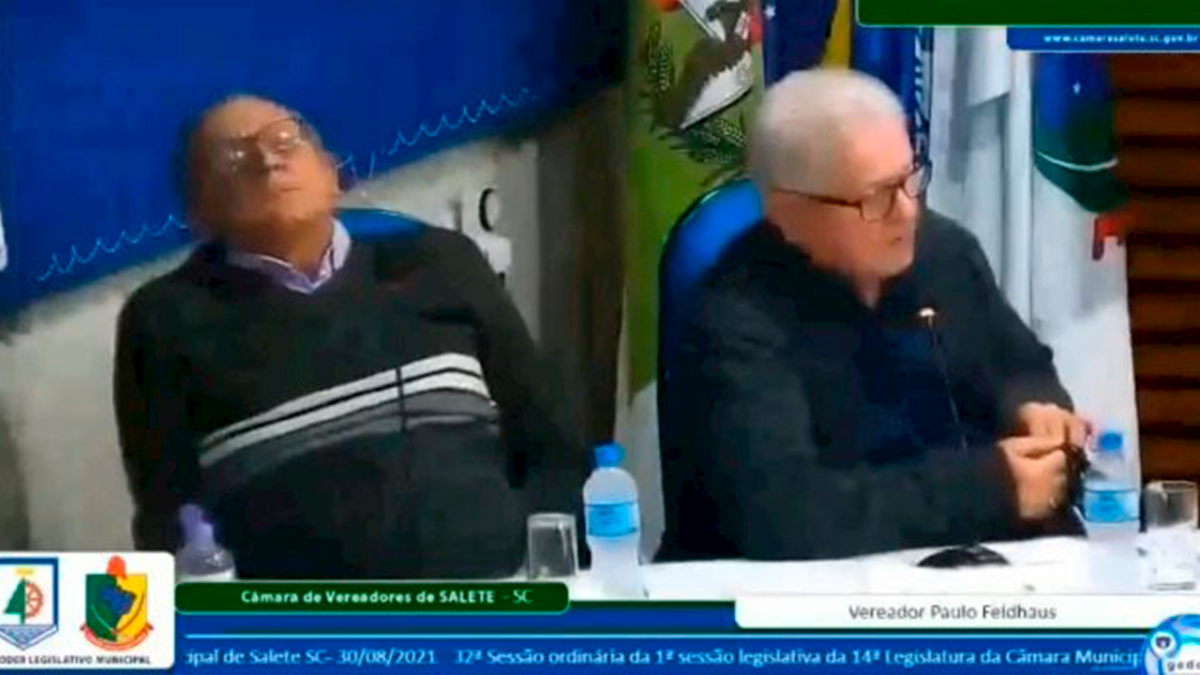 O vereador Pergentino Manarin (MDB), mais conhecido no município de Salete como “Nego”, foi flagrado numa situação nada confortável. Durante sessão legislativa ordinária da Câmara Municipal de Salete, ocorrida na segunda-feira (30), o parlamentar foi filmado pela própria equipe de transmissão enquanto dormia em pleno horário regimental de expediente.