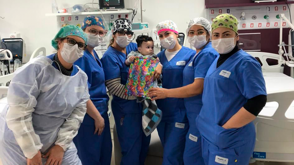 O pequeno Ravi Lucca Pacheco de Almeida nasceu no pronto socorro do Hospital Dom Joaquim de parto normal com 31 semanas e 4 dias, foi atendido e encaminhado para UTI Pediátrica onde segue internado em ganho de peso. Segundo a mãe Maria Eduarda Querino de Almeida, Ravi chegou num momento muito inesperado e o cuidado no hospital está sendo fundamental para o desenvolvimento dele. “Estou registrando todos os momentos porque foi tudo muito inesperado, e está sendo maravilhoso o atendimento aqui. Todo o carinho que a equipe tem por ele, todos os procedimentos que fizeram para o Ravi estar como ele está agora está sendo incrível. Eu só tenho a agradecer todo o tempo, a dedicação a ele para poder sair daqui bem saudável. Só tenho a agradecer por esses 30 dias por tudo que fizeram pelo Ravi”, disse Maria Eduarda, que é moradora de Sombrio.
