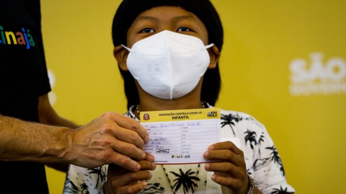 O indígena Davi Seremramiwe Xavante, de 8 anos, foi a primeira criança a ser vacinada contra a Covid-19 no Brasil (veja vídeo acima). Ele recebeu a dose por volta das 12h desta sexta-feira (14), em um evento simbólico organizado pelo governo de São Paulo para inaugurar a imunização de crianças de 5 a 11 anos.